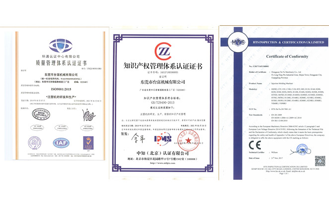 公司成立至今,榮獲了多項(xiàng)證書(shū),其中包括《中國(guó)注塑機(jī)十大品牌》、《廣東省信得過(guò)單位》等一些榮譽(yù),提為國(guó)家高新技術(shù)企業(yè),及多項(xiàng)專(zhuān)利。